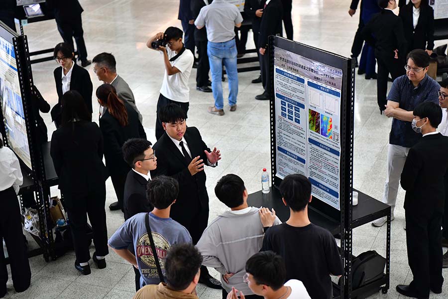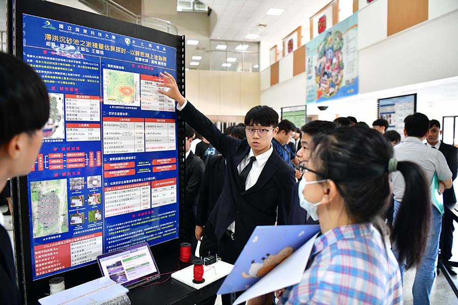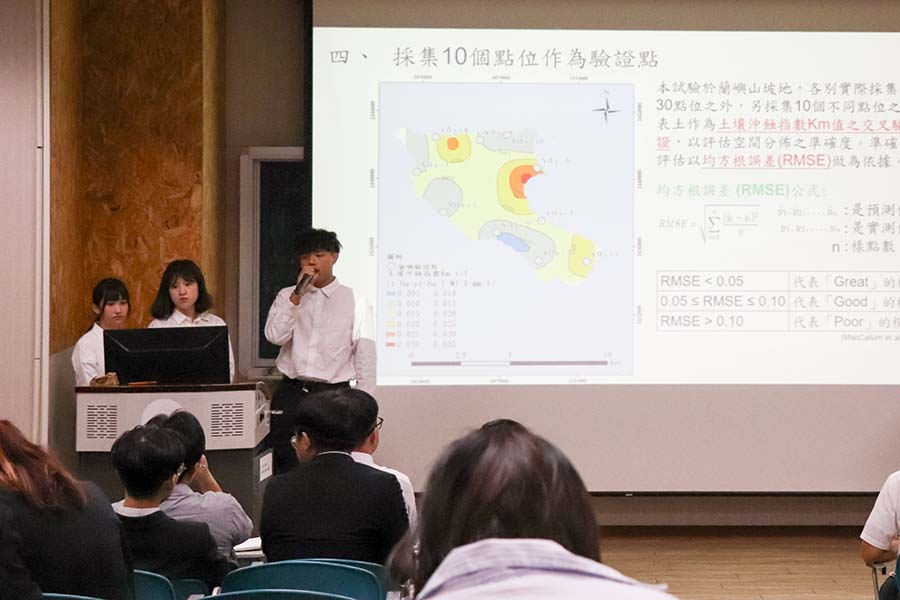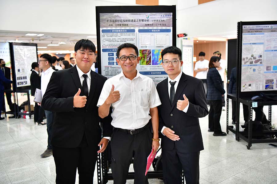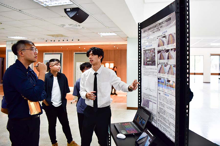 水土保持系於今日(5/8)舉辦「113學年度畢業專題成果發表會」,上午在水土保持系階梯教室展開。本次共有15組學生團隊參與,精心展現同學們歷經兩年努力所完成的研究與實務專題製作成果,內容更是涵蓋水土保持、遙測應用、生態修復、水資源管理、碳匯等多元領域,充分發揮水保系在專業訓練與實務操作上的深厚基礎。下午於圖書與會展館一樓大廳進行海報展示,圖文並茂地呈現各組專題的研究動機、方法、成果與應用價值。各團隊成員亦主動與師生及參觀來賓交流,詳細解說各自專題的研究內容與過程,完全展現即將畢業學生的專業素養與優異的溝通能力。